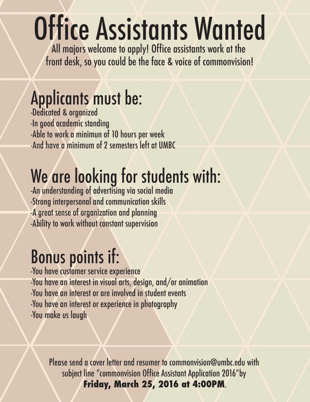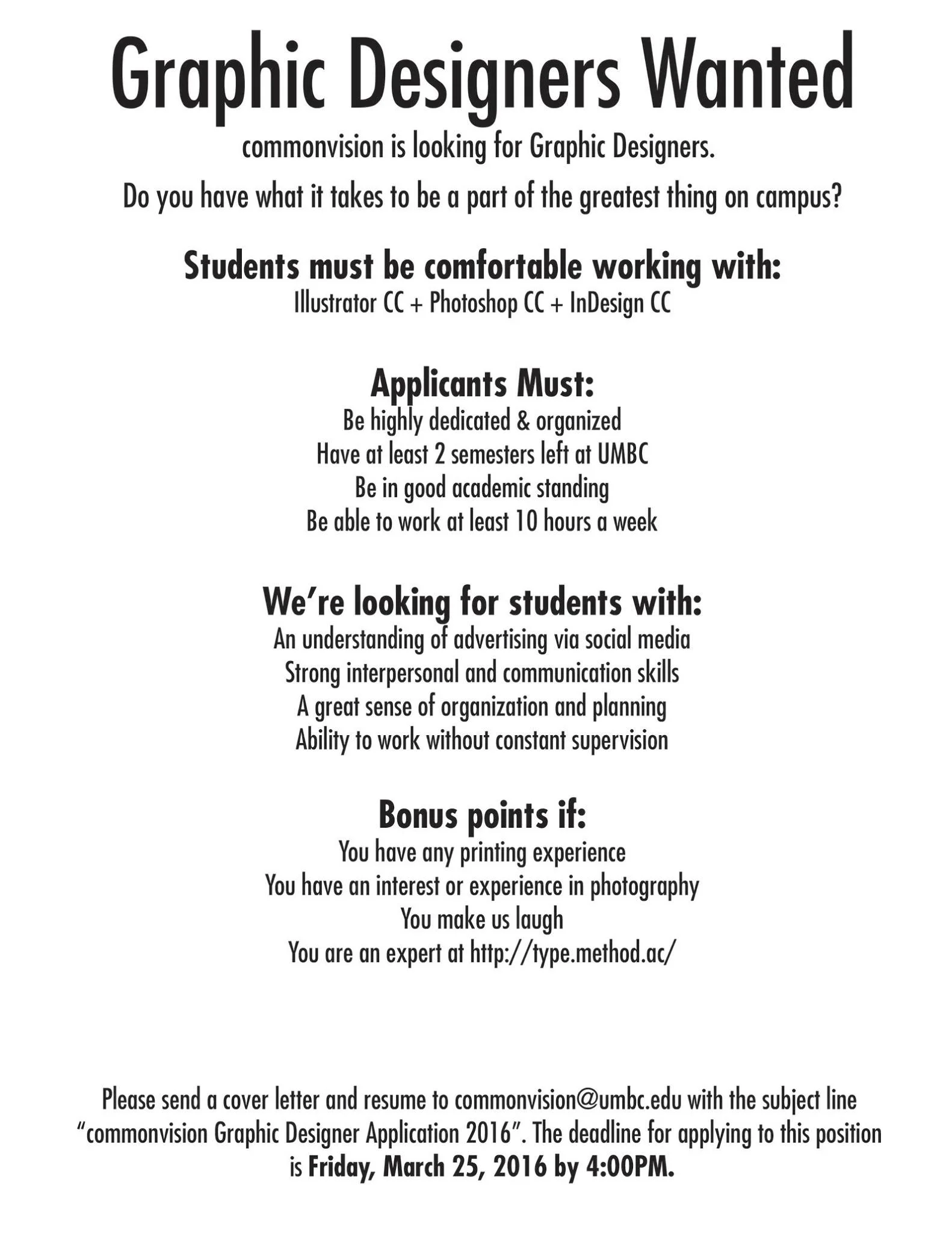 Friday, March 25th is the deadline to be a part of something great. Come work with us!