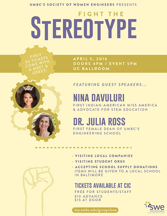 Carmella created this poster for SWE. It will feature two very important speakers. Tickets at the CIC.